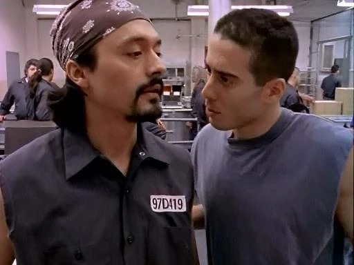The two of them come to the conclusion to scape goat the Italians and as a result, they coerce Busmalis, a witness with no vested interest to tell Redding that Italian inmate Salvatore DeSanto sold Augustus the drugs. DeSanto dies at dinner due to a toxic amount of LSD in his food courtesy of the Homeboys in the kitchen. Hill though states to Tim McManus that the Italians are innocent and as a result, Poet turns the tables on Guerra as he is looking for someone else to blame for the drugging of Hill. After hearing another lie from Busmalis at the hands of Poet, Redding angrily accuses Guerra to Morales and a fight breaks out ending the alliance between the two groups. When released from the hole, Enrique and Guerra approach Frank Urbano and the Italians. Morales states that they are sorry for allying with a N***** like Redding and wish to be partners again. Urbano says yes under a 60-40 deal where the Latinos are charged the 10%. Chico protests but Morales says yes under the condition that Redding dies. As Urbano makes an attempt on Redding, Augustus Hill rolls in the way and dies.